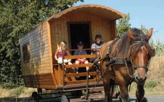 Partez en roulotte tirée par un paisible cheval de trait, randonnez en compagnie d'ânes câlins et malins : pour vous, des haltes privilégiées, une campagne préservée et toute la forêt du Parc Naturel Régional du Haut Languedoc.
